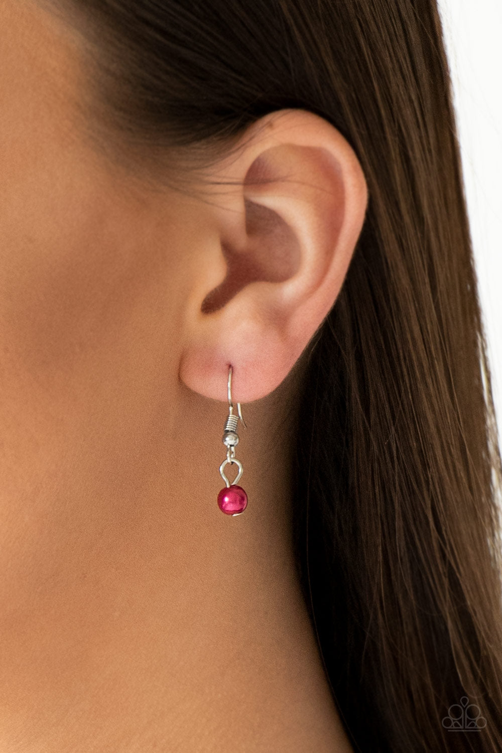 Infused with silver chain, vivacious pink pearls are threaded along an invisible wire below the collar. Matching pink pearls and glittery white rhinestones swing from the pearly strand, creating a flirtatious fringe below the collar. Features an adjustable clasp closure.