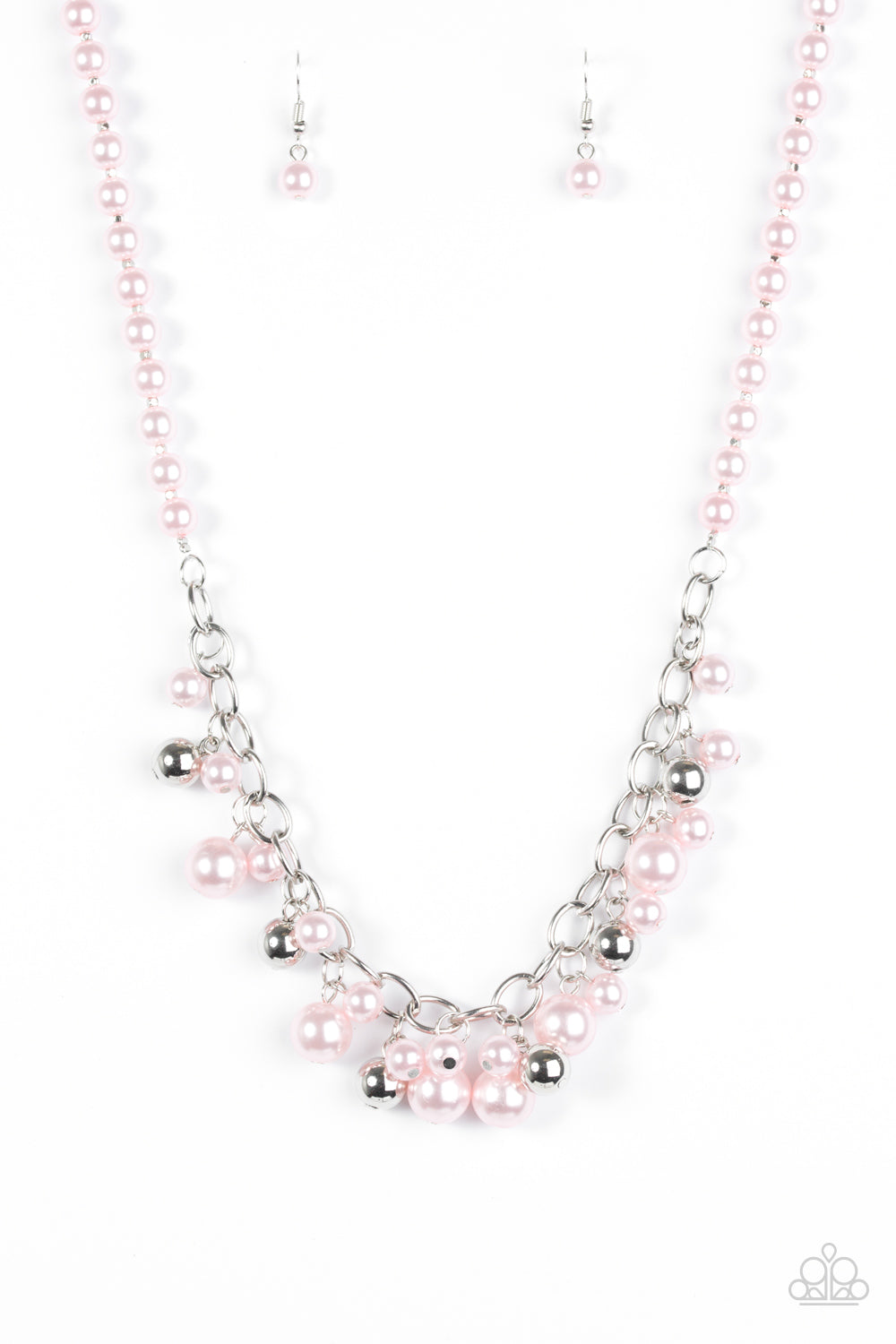 A classic strand of pink pearls gives way to a shimmery silver chain. Pink pearls and silver beads trickle from the bottom of the chain, adding a sassy to twist to the classic palette. Features an adjustable clasp closure.