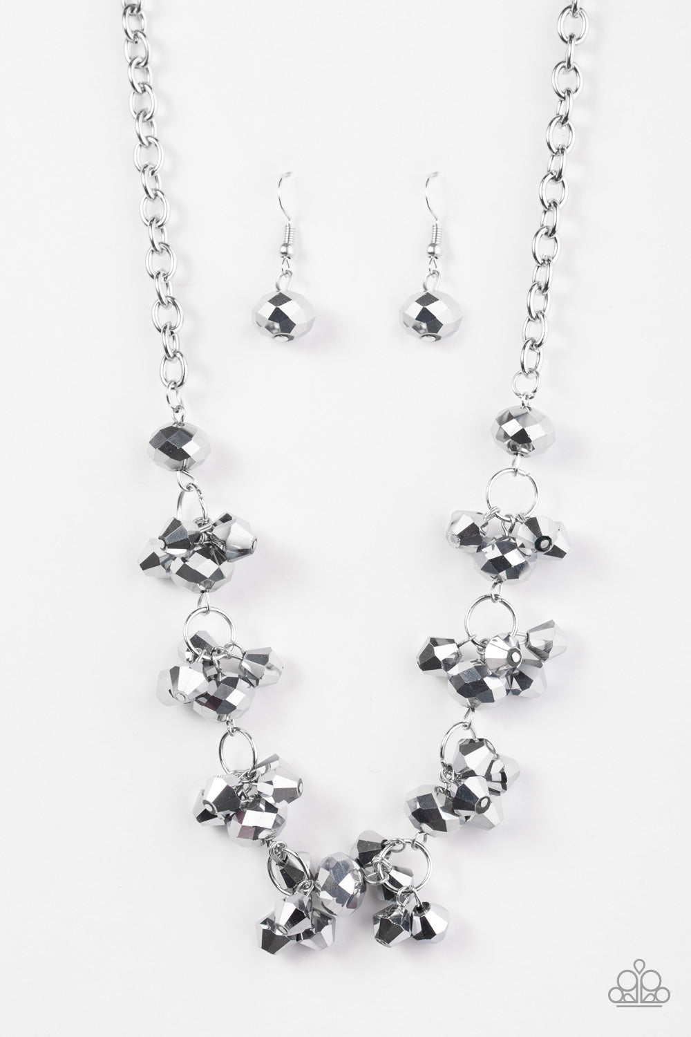 Faceted hematite beading trickle along a bold silver chain, creating a dramatic fringe below the collar. Featuring elegant pear-shaped cuts, smaller hematite rhinestones cluster atop the gems for an incandescent finish. Features an adjustable clasp closure.