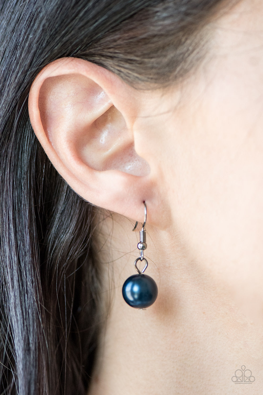 A row of midnight blue pearls swings above a strand of dark silver pearls, creating a refined stacked fringe below the collar for a timeless look. Features an adjustable clasp closure.