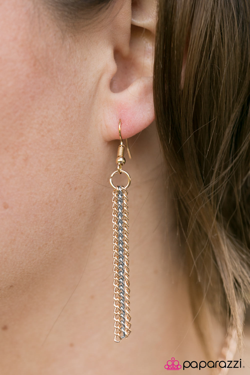 Shimmery silver and gold chains fall into an elegant tapered fringe below the collar. Flat discs drip along the top of the edgy fringe for an additional splash of metallic sparkle. Features an adjustable clasp closure.