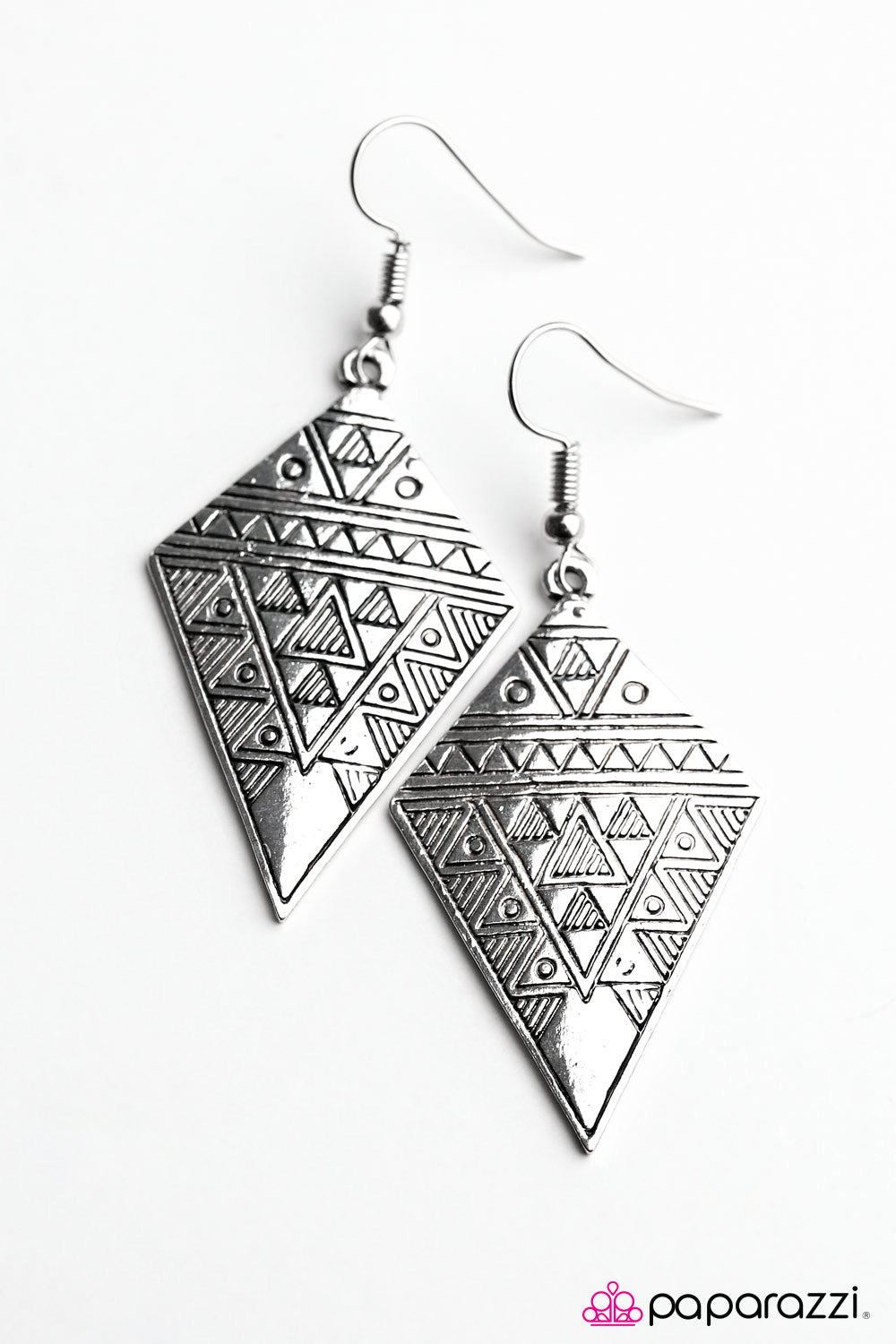 Stamped in an indigenous inspired pattern, a kite-shape lure swings from the ear in a trendy tribal fashion. Earring attaches to a standard fishhook fitting.